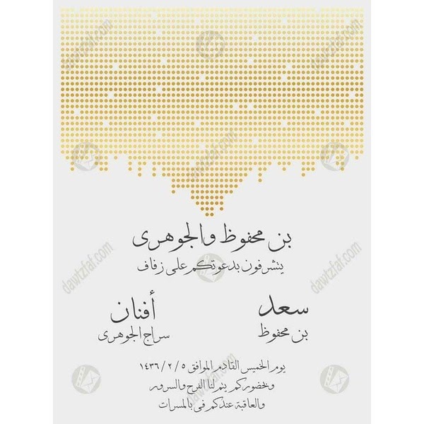 دعوة زفاف الكترونية - دعوة زفاف بدون أسماء وأهم النقاط التي يجب مراعاتها لعمل الدعوة - زيادة. دعوة ومناسبات | دعوة زواج الكترونية نسائية. • دعوة زفاف الكترونية & دعوة عقد قران •• السعر: طريقة تصميم دعوة زواج إلكترونية. هي مكتبة رقمية للكتب والروايات الإلكترونية العربية والعالمية تحتوي آلاف الكتب والروايات في جميع المجالات بصيغة pdf doc وتتيح للمؤلفين نشر الكتب على الإنترنت و. • دعوة زفاف الكترونية & دعوة عقد قران • • السعر: